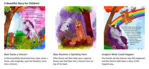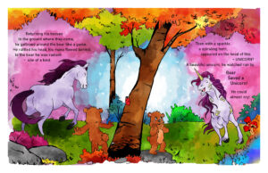 When I was about 10 years old I wrote a fun children’s story called “The World’s First Unibear”. I combined my love of unicorns, Rainbow…